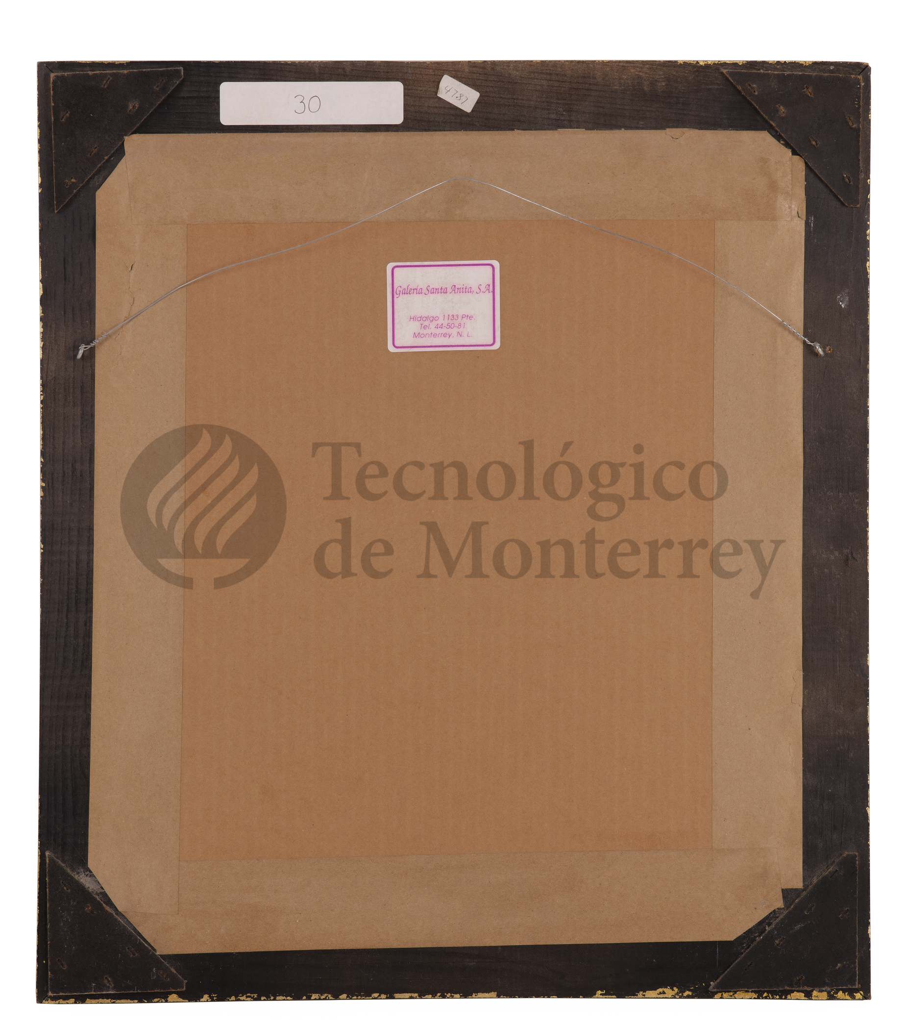 Serigrafía a color de Arnaldo Coen, que forma parte de la carpeta de grabados realizados para conmemorar el vigésimo aniversario del Campus Estado de México. La imagen en papel en tonos pastel que representa una figura antropomorfa de una criatura esbelta y alargada, que se encuentra de pie en un paisaje sutilmente delineado. La paleta de colores es suave y etérea, dominada por tonos amarillos y azules claros, lo que otorga a la pieza una atmósfera de tranquilidad y delicadeza. El estilo sugiere una mezcla de lo figurativo y lo abstracto, con una representación simplificada de la criatura. Coen emplea texturas ligeras y un trazo delicado para resaltar los detalles.