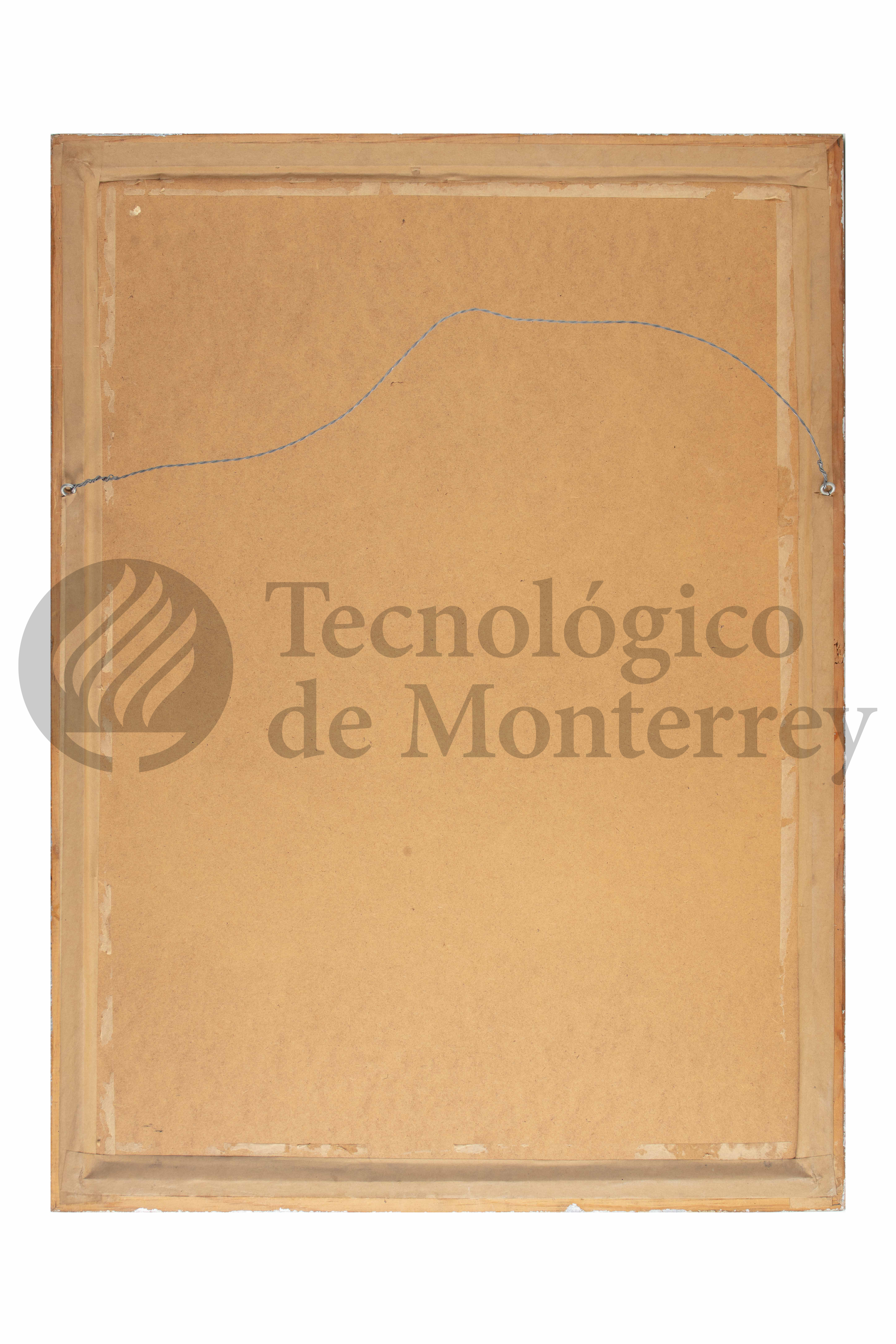 Obra gráfica de litografía en blanco y negro sobre papel de algodón en cuya composición principal se aprecia a una niña vestida de blanco de pie y un niño pequeño detrás de ella
