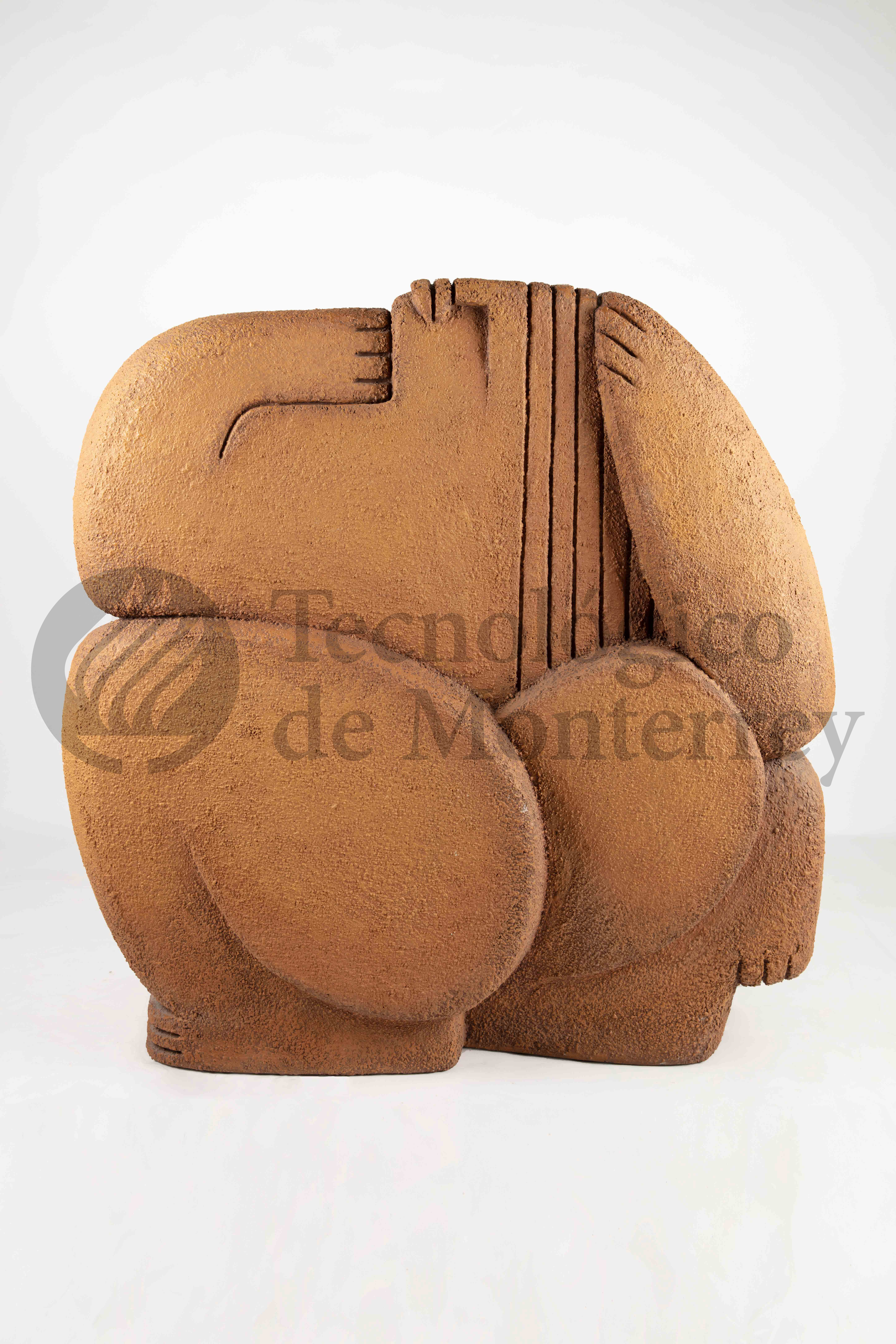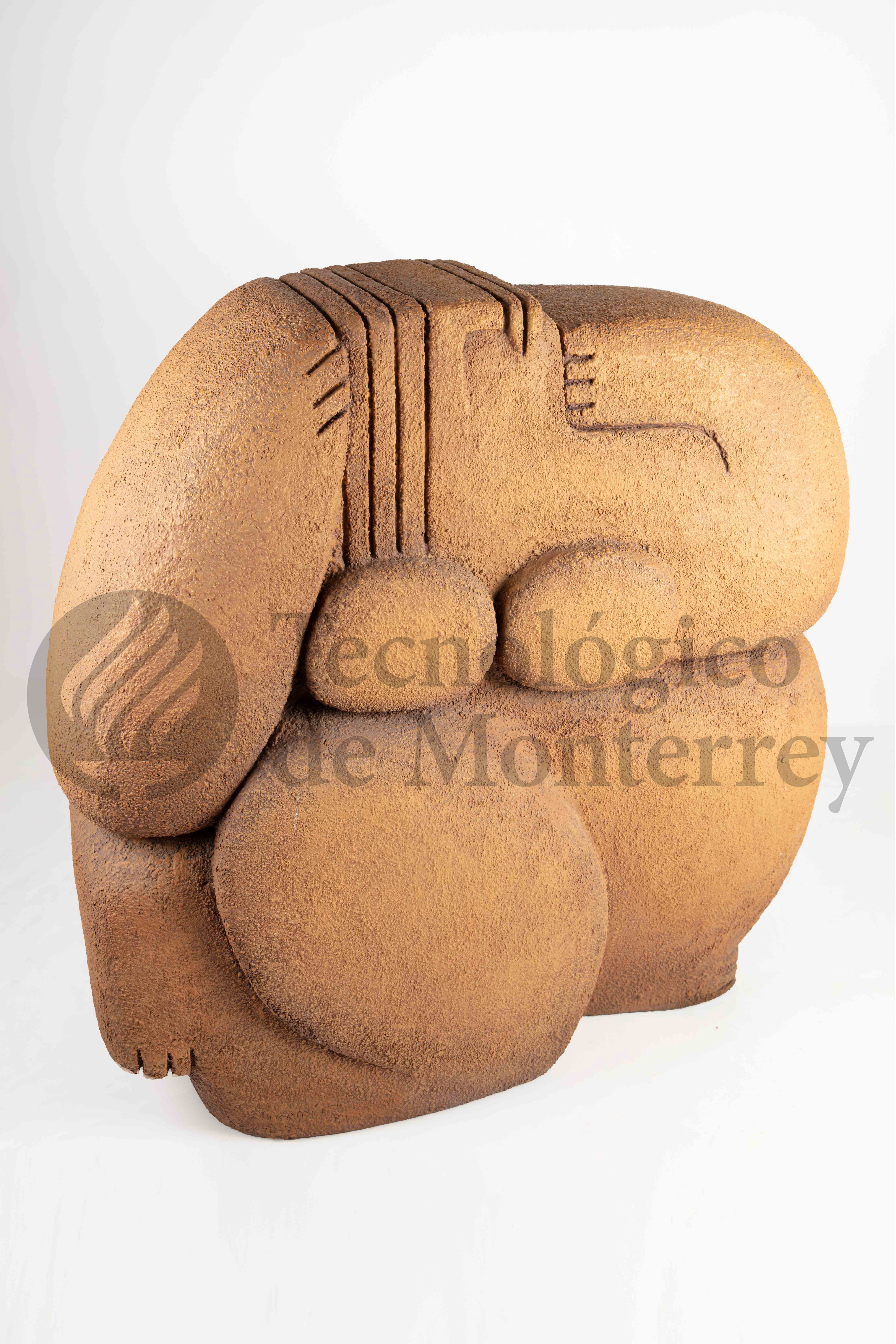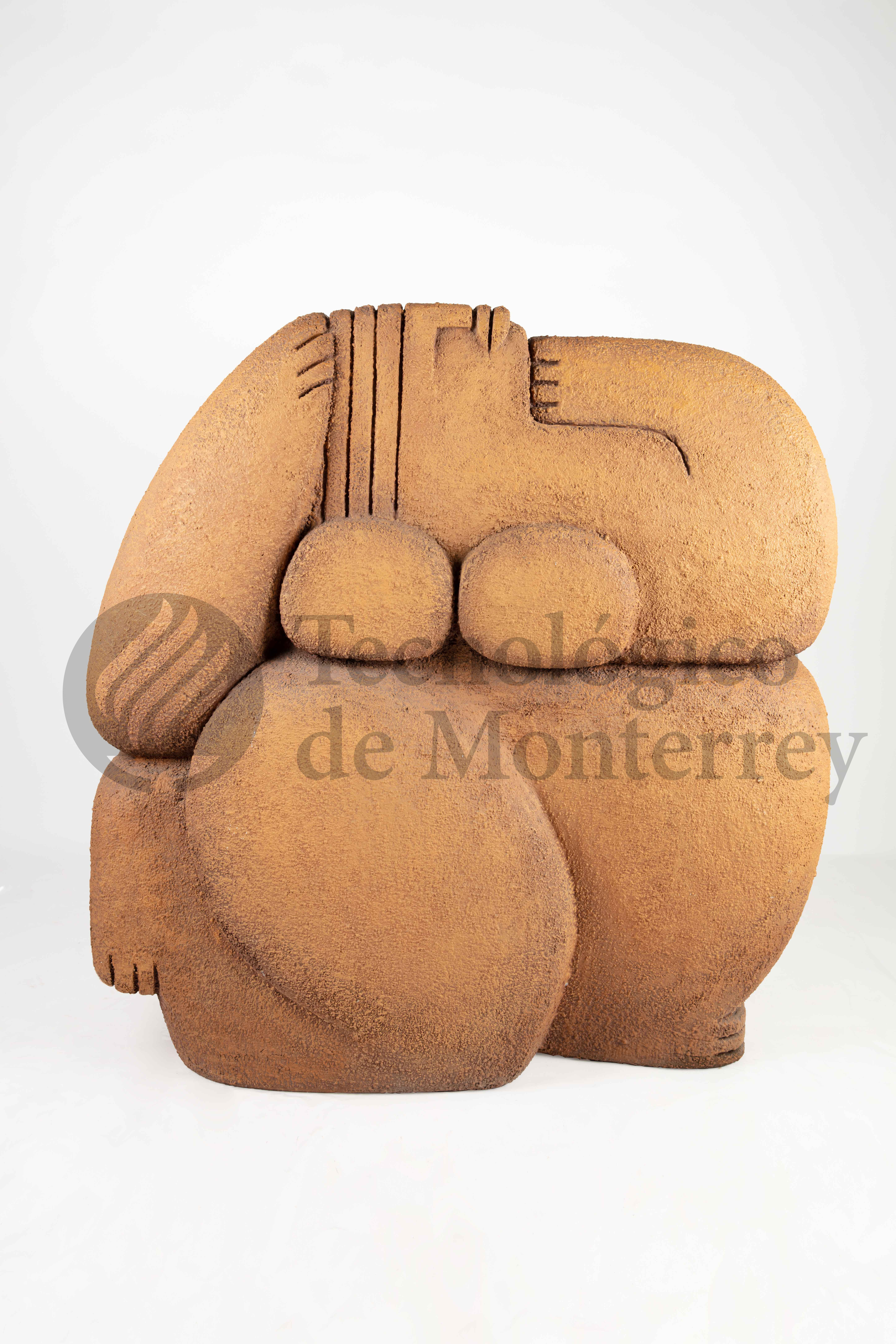 Escultura hueca realizada con fibra de vidrio y cargas que representa un cuerpo humano femenino voluptuoso desnudo. De frente se aprecian los senos. En la parte trasera, los glúteos. La cabeza está mirando hacia arriba mientras el brazo izquierdo sostiene la barbilla y el brazo derecho la nuca, su pierna derecha está doblada y apoyada sobre la rodilla.
