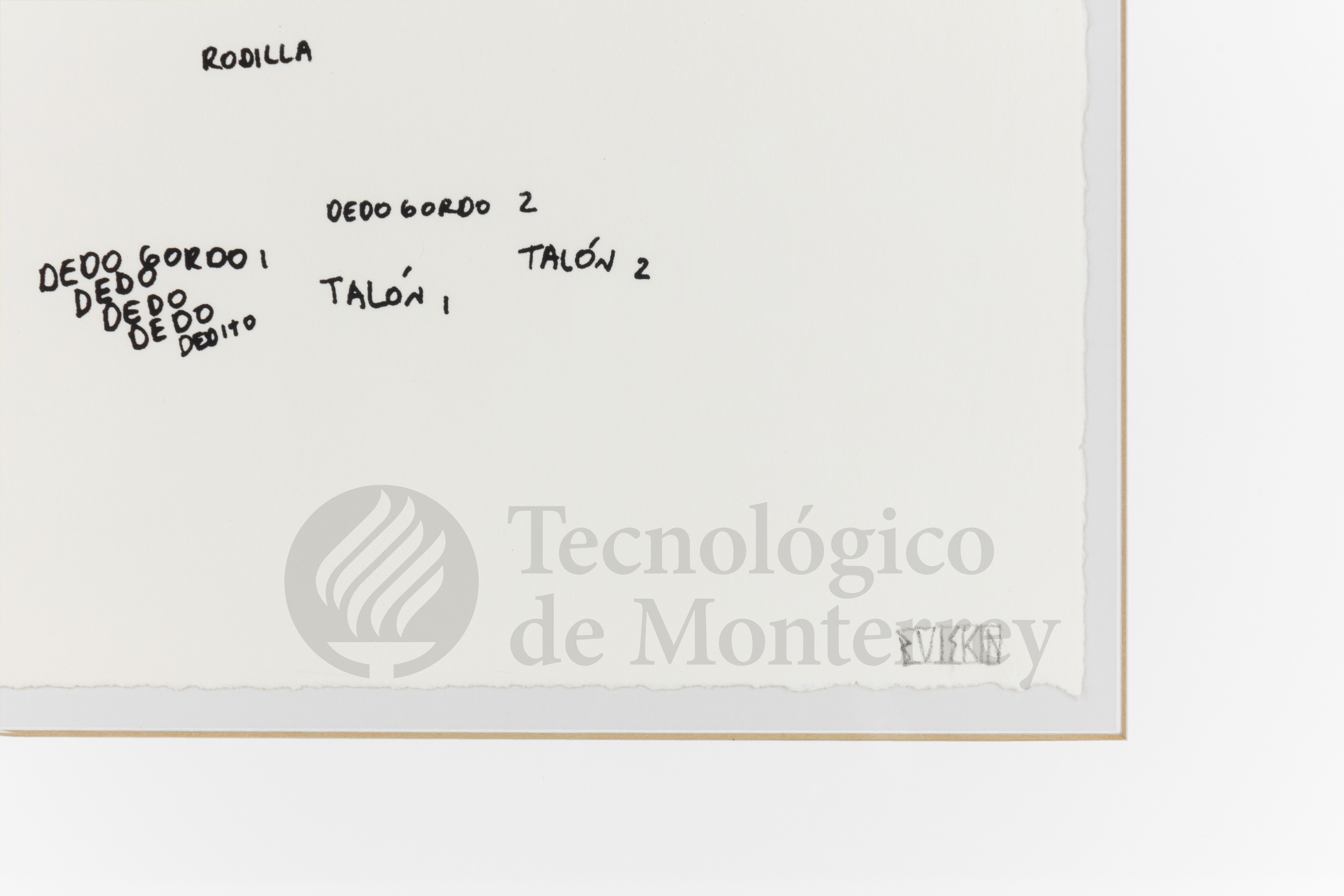 La serigrafía de Boris Viskin, que forma parte de "Carpeta 30 aniversario CEM, 2006", se caracteriza por su enfoque minimalista y conceptual. Presenta un dibujo simple y esquemático que parece representar el cuerpo humano de una manera abstracta, utilizando palabras en lugar de imágenes detalladas. Los elementos del cuerpo, como "cara", "cuello", "chichi", "trenza", "ombligo", "muslo", "rodilla", "dedo", "gordo" y "talón", están escritos en el lienzo de manera dispersa, siguiendo un orden anatómico pero sin un dibujo que los acompañe. El estilo recuerda a una lista o esquema, que juega con la idea de la representación del cuerpo de manera no visual, sino textual. La obra, numerada 100/150.
