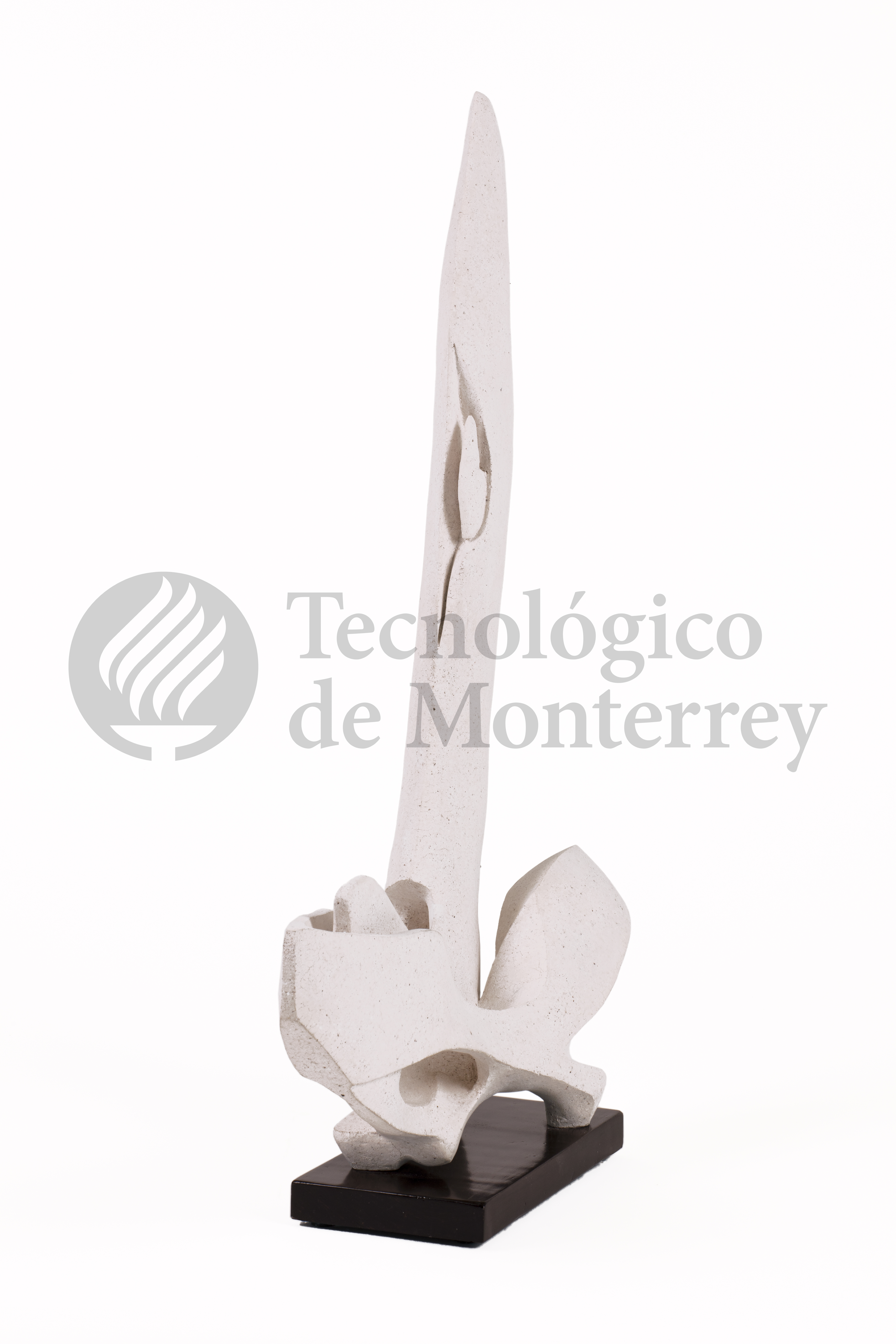 "Arca sacra" de Jesús Alberto Félix Chapman es una escultura abstracta en cerámica refractaria de color blanco que tiende a formar una vertical. Las líneas curvas y orgánicas evocan una sensación de movimiento. Realizada en un tono claro, sus formas suaves y fluidas sugieren una composición armoniosa. La pieza se sostiene sobre una base que contrasta con las formas dinámicas de la estructura principal, logrando un equilibrio visual entre la estabilidad y la fluidez.